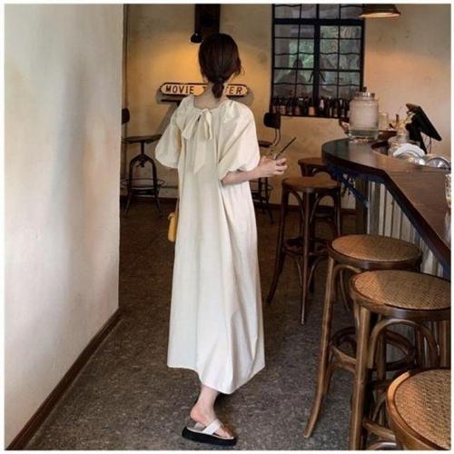 롱원피스 퍼플 크림 뒷리본 WD548E6