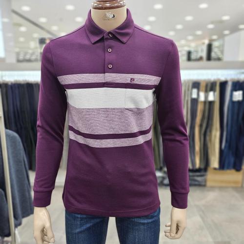 [피에르가르뎅](모다인천점)퍼플 세로 스트라이프 카라 티셔츠/PPTS4401A_IC