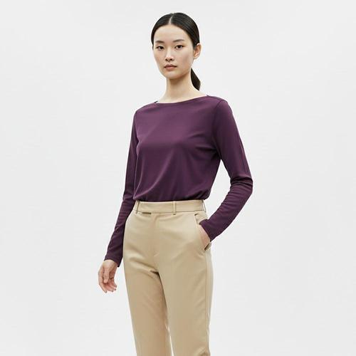 [샵앤][샵앤] 국산 여성 보트넥 시보리 면 긴팔티 DAI-WSH-20811-퍼플