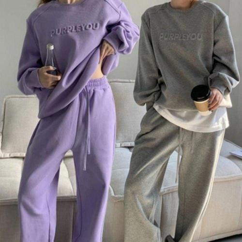 기모 맨투맨 조거 팬츠 여성 트레이닝 상하 퍼플 셋업 루즈핏 WFMZYOA
