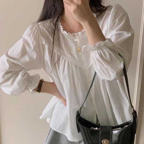 [옷자락] 여자 라운드넥 빅펀칭카라 로맨틱 블라우스