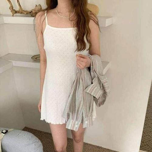 [에이치플러스몰]썸머 캐미컬 니트 펀칭 나시 원피스
