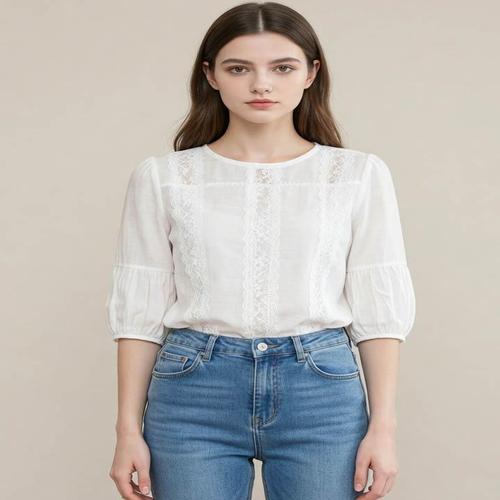 (스타일하우스) 블라우스 셔츠 브라우스 라운드 펀칭 레이스 LM 0685