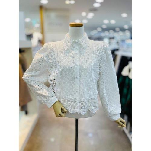 정상가 89,000원 페미닌 펀칭 버튼업 프릴 긴팔 블라우스 (GOCBA010D)