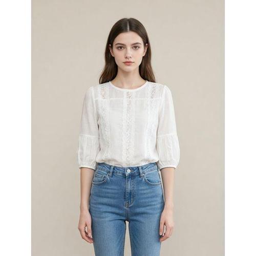 [미니멈에브리데이][미니멈에브리데이] 라운드 플라워 펀칭 레이스 블라우스 (EC1BA017D)