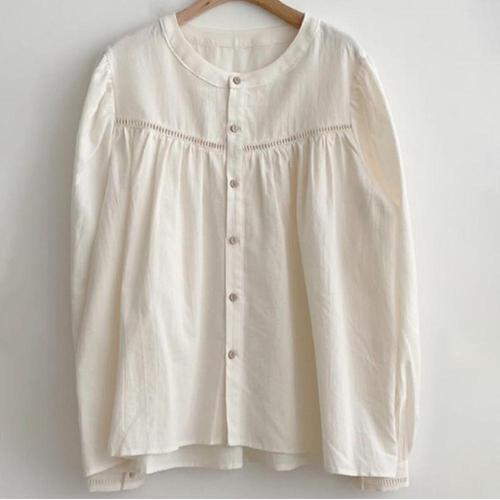 (스타일하우스) 블라우스 셔츠 브라우스 시원한 노카라 펀칭 디테일 퍼프소매 여성