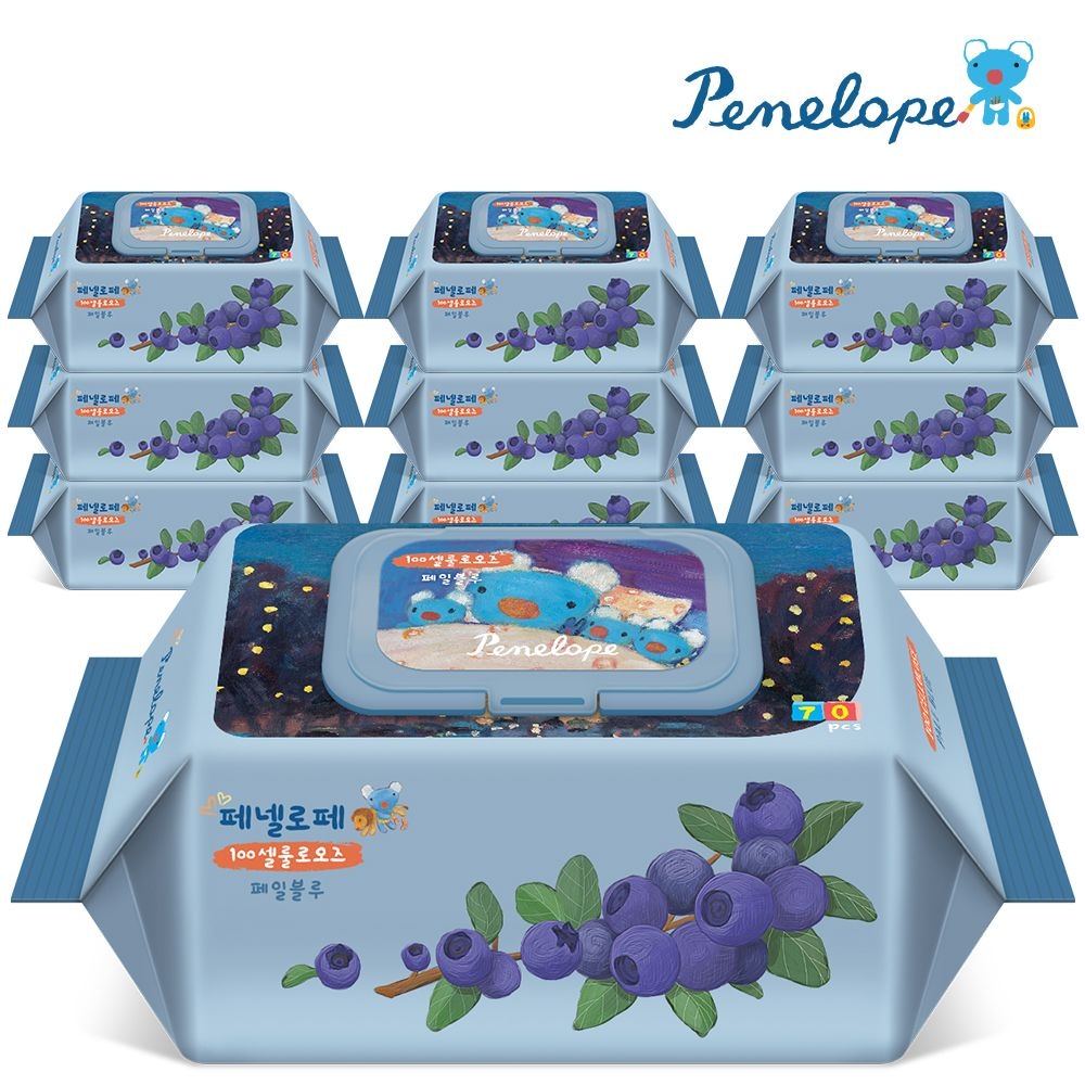 페넬로페 아기물티슈 100셀룰로오즈 페일블루 캡형 70매*10팩