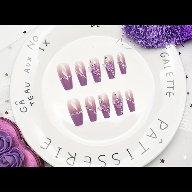 TEMU 퍼플 고급 웨어 네일 완성형 네일 패치 롱 발레 네일 화이트 네일 패치 네일 패치