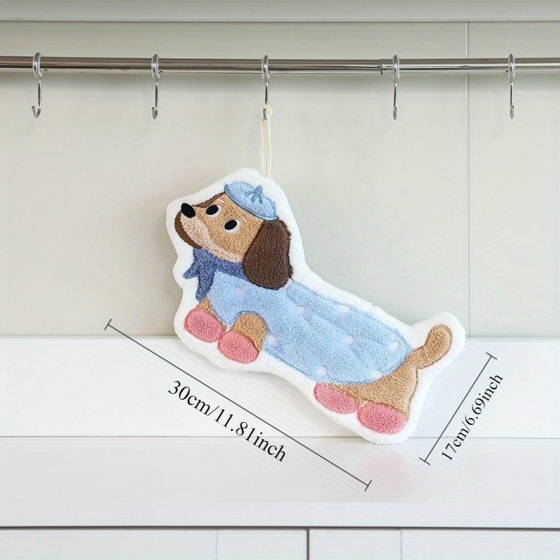 TEMU 귀여운 만화 닥스훈트 모양 산호초 손끝 타월 1개, 걸이형, 두꺼운, 초강력 흡수성, 주방 및 욕실용 겸용 핸드 타월