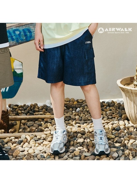 [에어워크주니어] 주니어 데님룩 하프 카고팬츠
