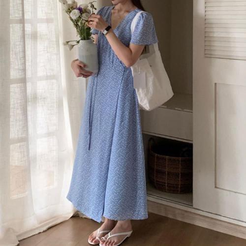 [다잇템]여자 플라워패턴 잔잔 페미닌 롱 시폰 원피스