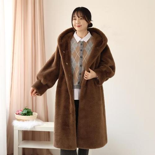 CBHV 겨울 여성용 밍크 카디건 코트 루즈핏 이쁜 인조 모피 롱 코트