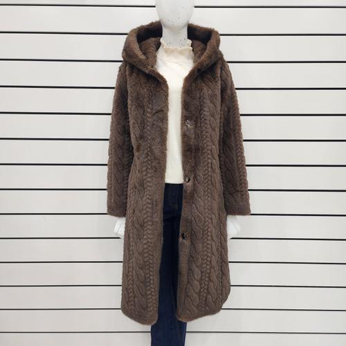 [샤틴]후드넥 패턴 페이크 퍼 코트S254C003A