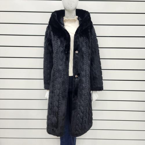[베스띠벨리]케이블패턴 페이크퍼 후드 롱코트 ( BJHEY86530 )