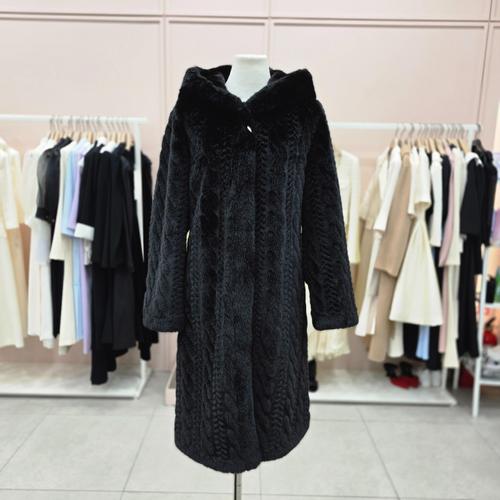 [샤틴]후드넥 패턴 페이크 퍼 코트S254C003A03