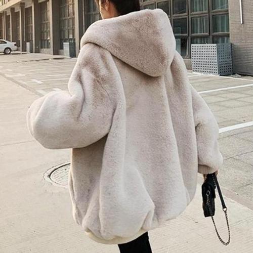 [다잇템]여자 반소매 FW 부드러운 페이크퍼 후드집업