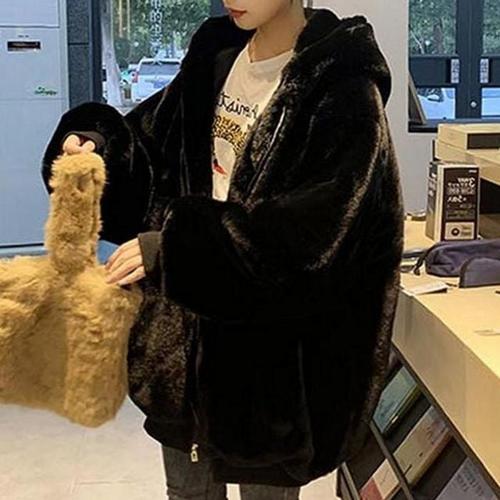 여자 페이크퍼 후드집업 밍크 루즈핏 점퍼