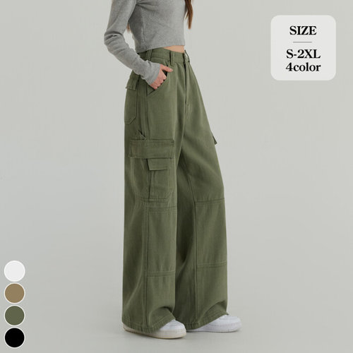 포레스트핏 / (찐코튼32탄) 카고 포켓 절개 코튼 와이드 팬츠
