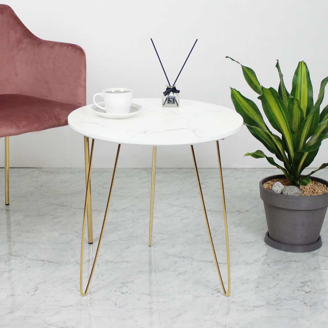 [리퍼] 마블 소파테이블 카페 화이트 식탁 골드 500mm