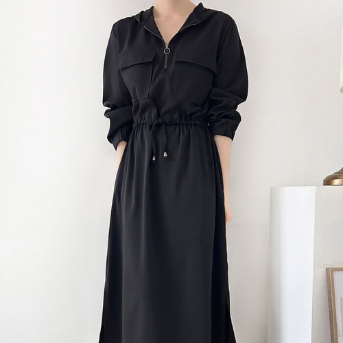 [아우트]포켓 롱한 후드원피스 기장 원피스 실용적