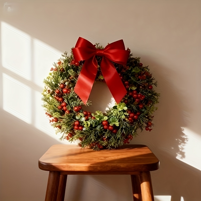 TEMU 실감나는 인조 화환 (빨간 열매 & 녹색 식물) - 매달린 루프가 있는 우아한 크리스마스 화환, 전기 불필요, 실내/실외 휴일 장식용, 내구성이 뛰어난 플라스틱 구조 - 완벽한 크리스마스 선물, 축제 분위기의 홈 데코, 클래식 스타일, 현관문, 둥근리스, 현관문 인테리어 소품, 리스 조화, 철제리스, 현관문 장식