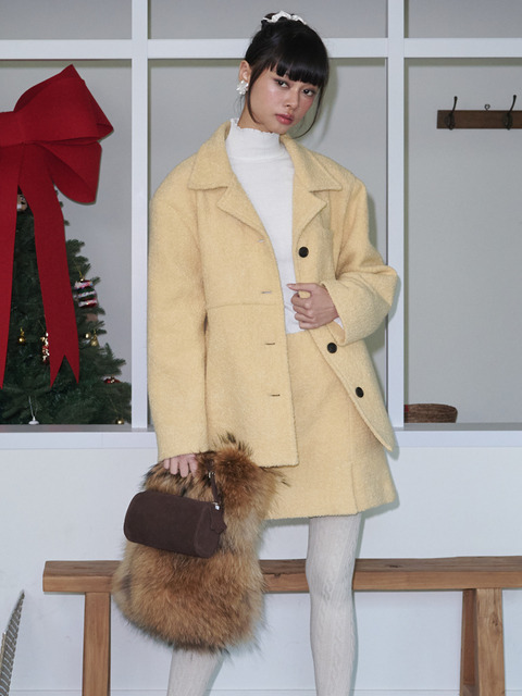 [오프닝선샤인] 세트_부클 울 오버사이즈 자켓+포켓 미니 스커트 버터