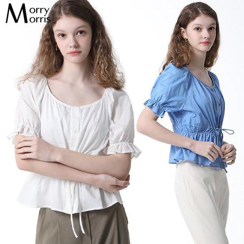[모리모리스]MARIO코튼 퍼프 페플럼 블라우스 (택가격 68000원)