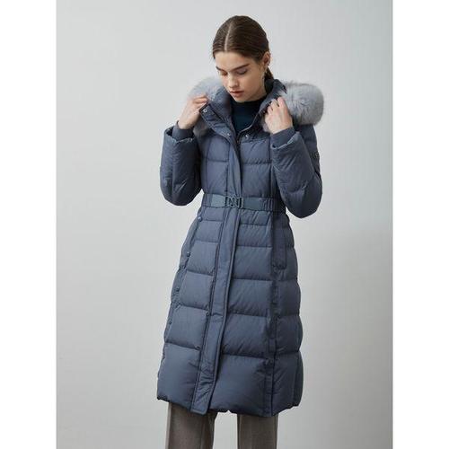 구스다운 폭스 퍼 후드 벨티드 롱 코트 BJHJY2630 IV1164237