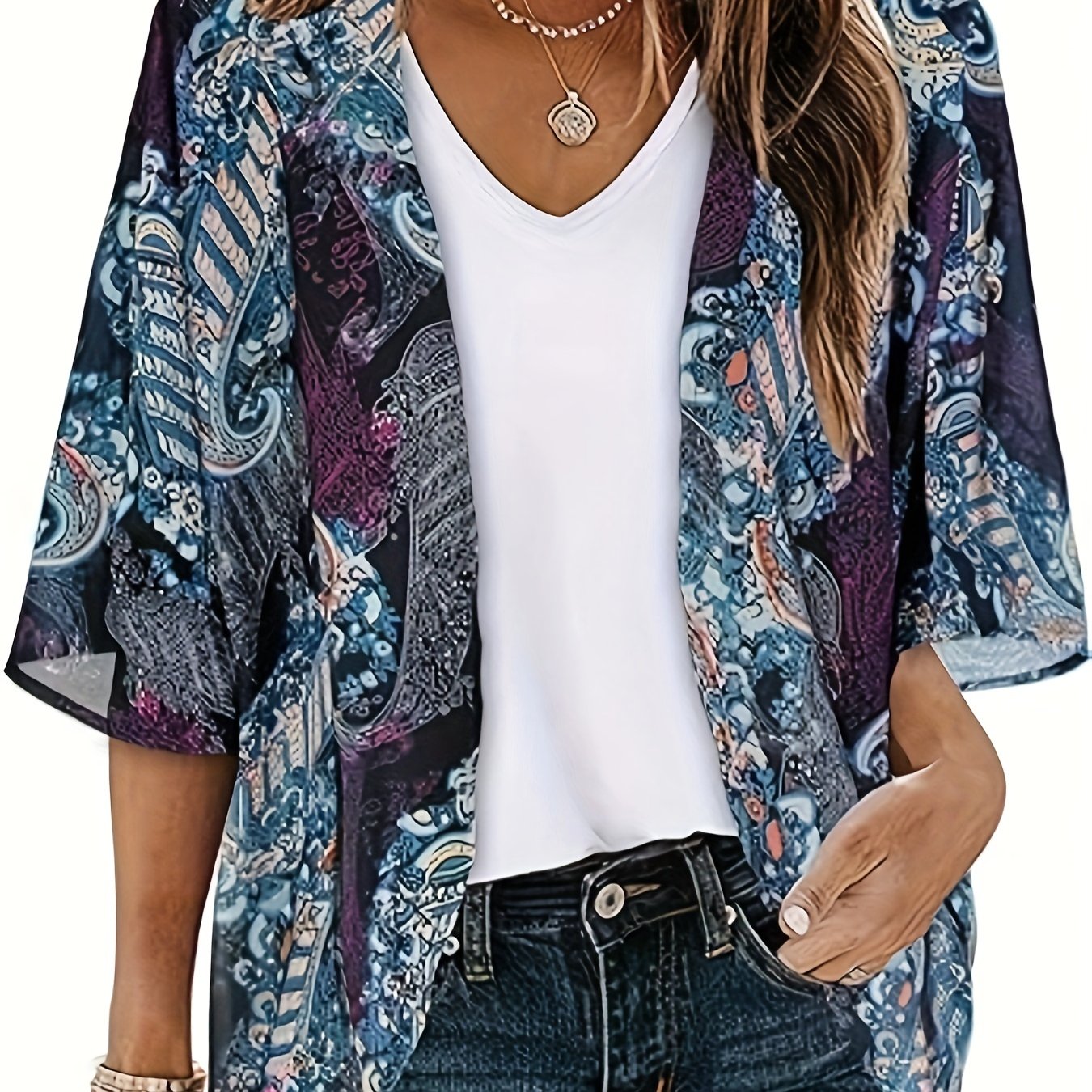 TEMU 여성용 쉬폰 기모노 가디건 경량 박쥐 날개 여름 캐주얼 롱 시스루 가디건 여성용 커버업 상의