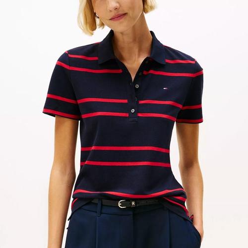 [해외배송] 타미 여성 스트라이프 스트레치 피큐 폴로 Navy Multi
