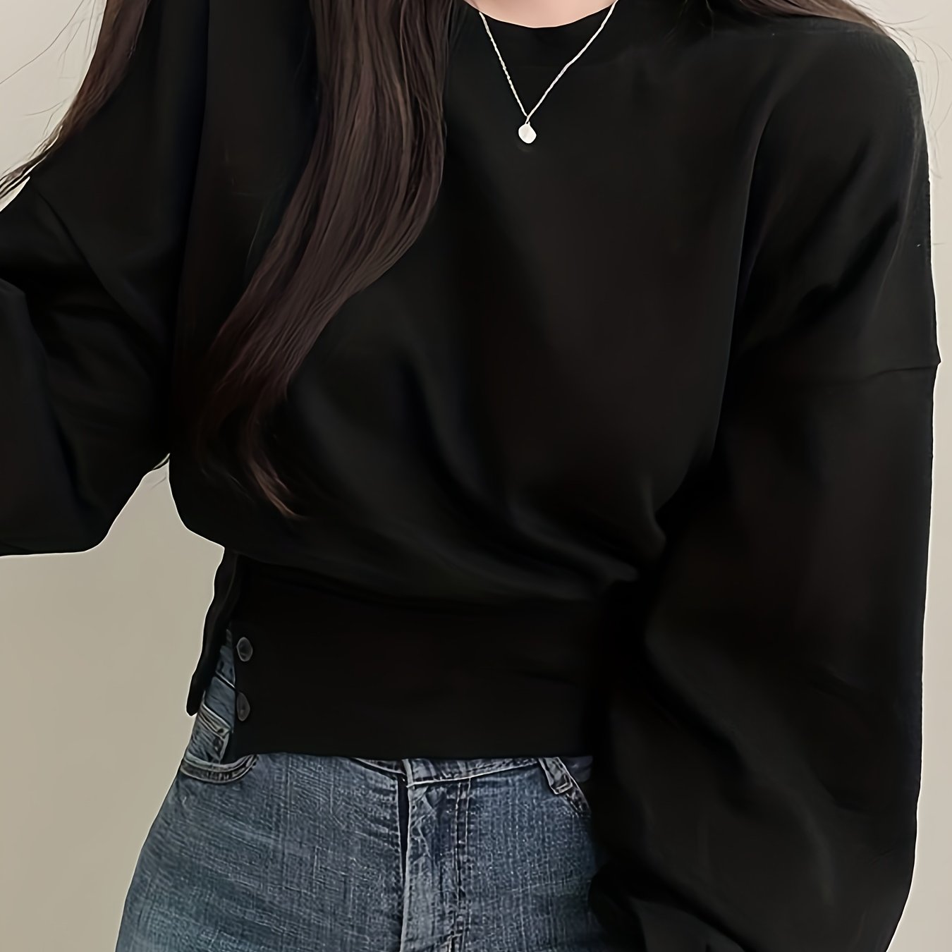TEMU 니치 숏 웨이스트 집업 라운드넥 스웨트셔츠 여성용, 가을 가벼운 다용도 루즈핏 긴팔 탑