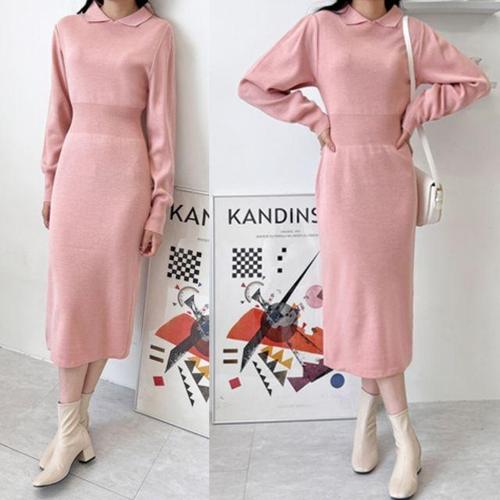 클래식 어깨 주름포인트컬러 걸 폴로넥 스웨터 맥시드레스
