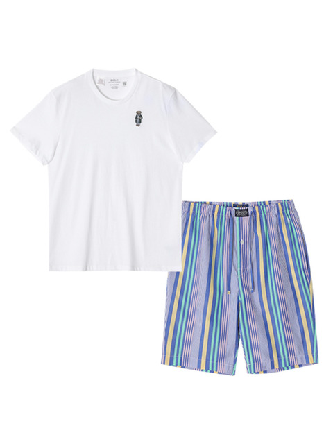[폴로 랄프 로렌] 폴로랄프로렌 714936583001 베어 포니 스트라이프 반팔 바지 기프트 세트 남성 파자마 잠옷