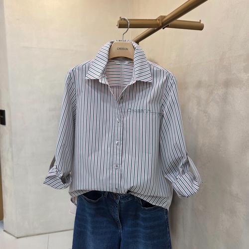 [크레송].폴리 혼방 스트라이프 남방식 블라우스 OBCPBP03DG