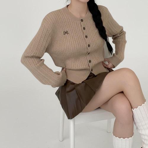 |CCJ6D0A|여성 슬림핏 케이블 니트 크롭 가디건 폴리 소재