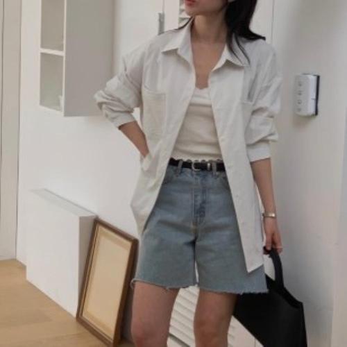 [옷자락]여성 트임 폴리코튼 루즈핏 라운드넥 티셔츠