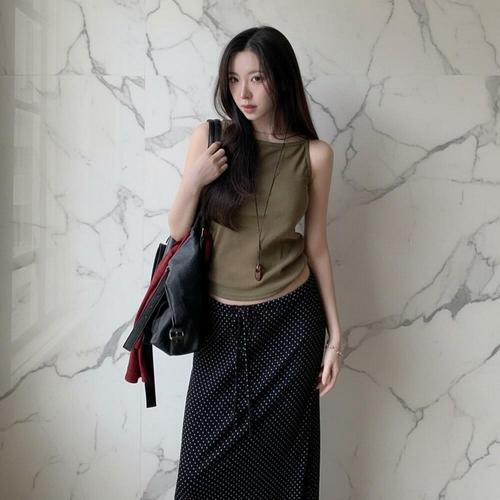 [미라클세븐]여성 신축성 보트넥 골지 슬림 나시 폴리 레이온 스판