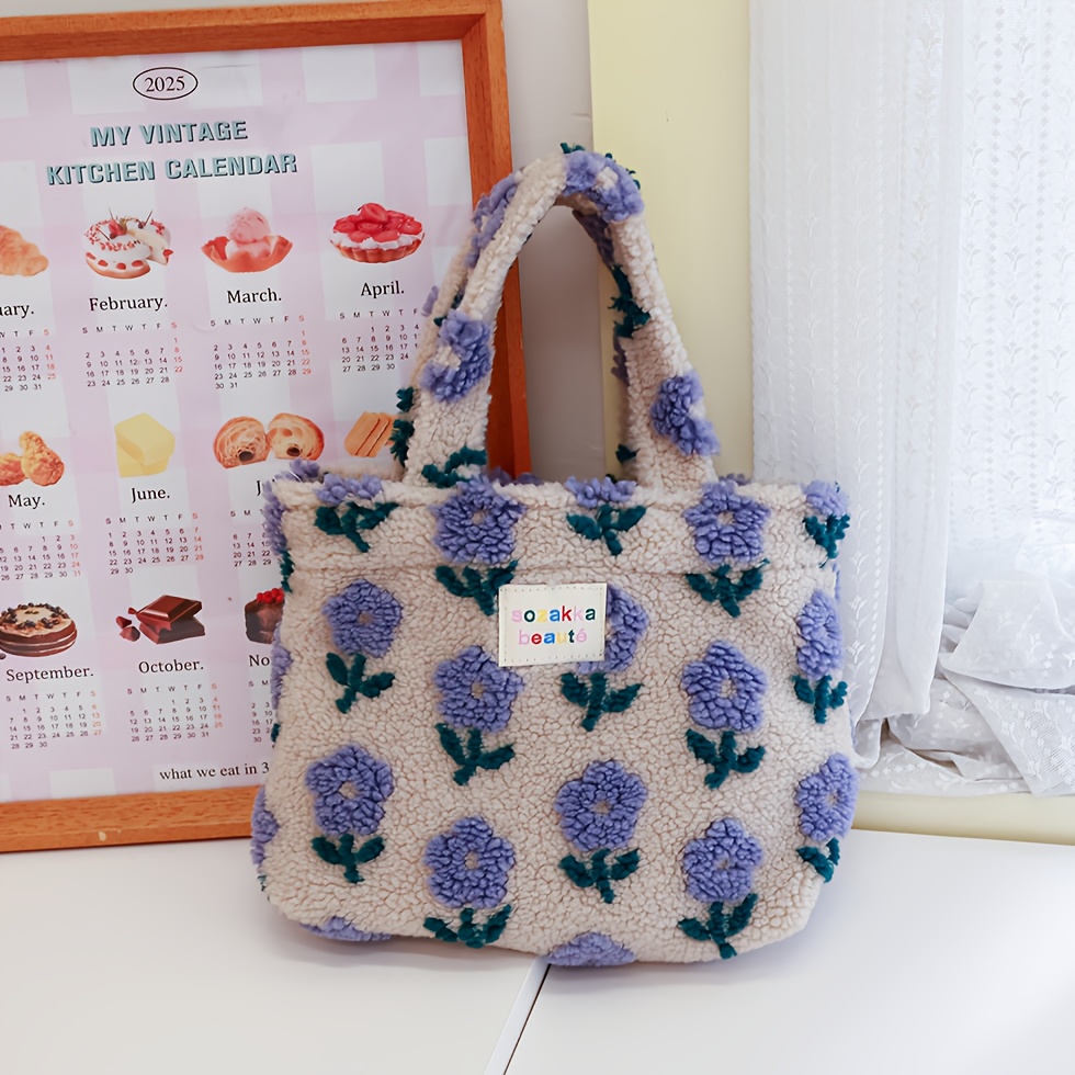 TEMU 신제품, 두꺼운 니트 자카드 원단, 핸드백, 토트백, 편리한 쇼핑백 (출근용), 외출용 수납 가방, 여성 가방, 빈티지 스타일, 대용량, 플로럴 패턴, 데일리, 신학기, 개학 시즌, 라마단