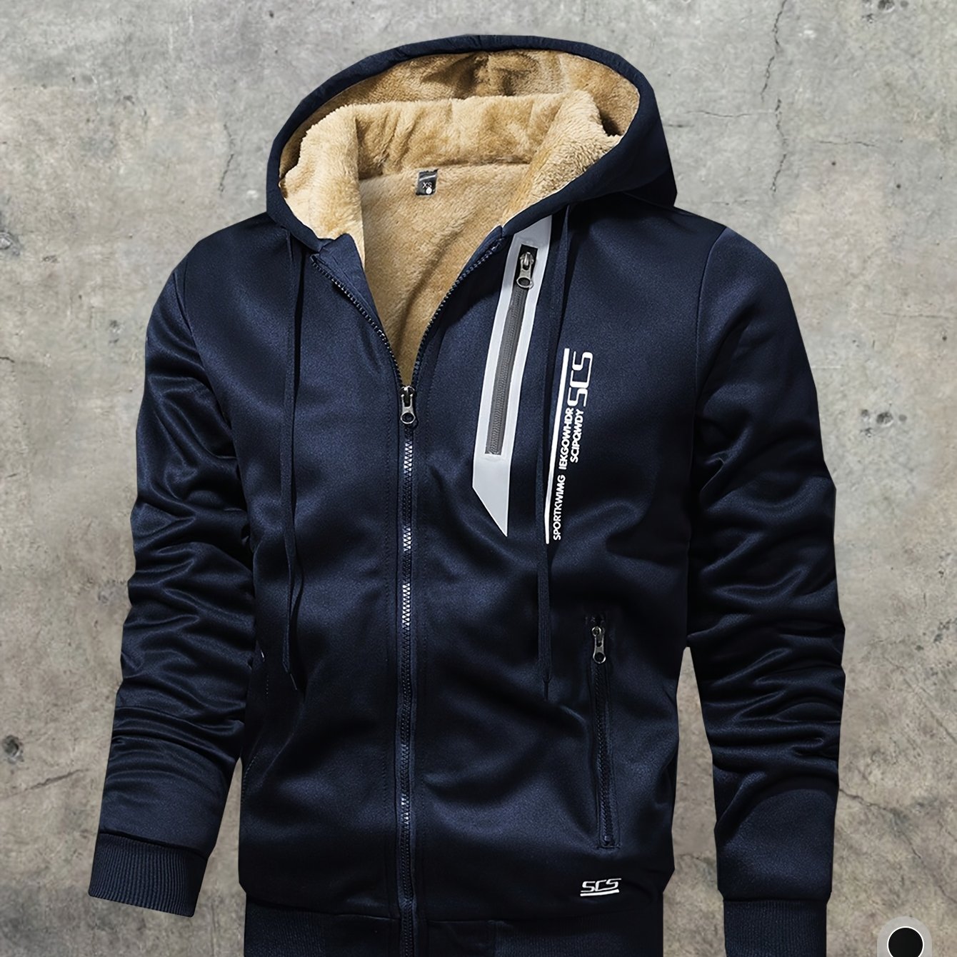 TEMU 남성용 두꺼운 플리스 가디건, 후드형, 따뜻한 프린트 레터링