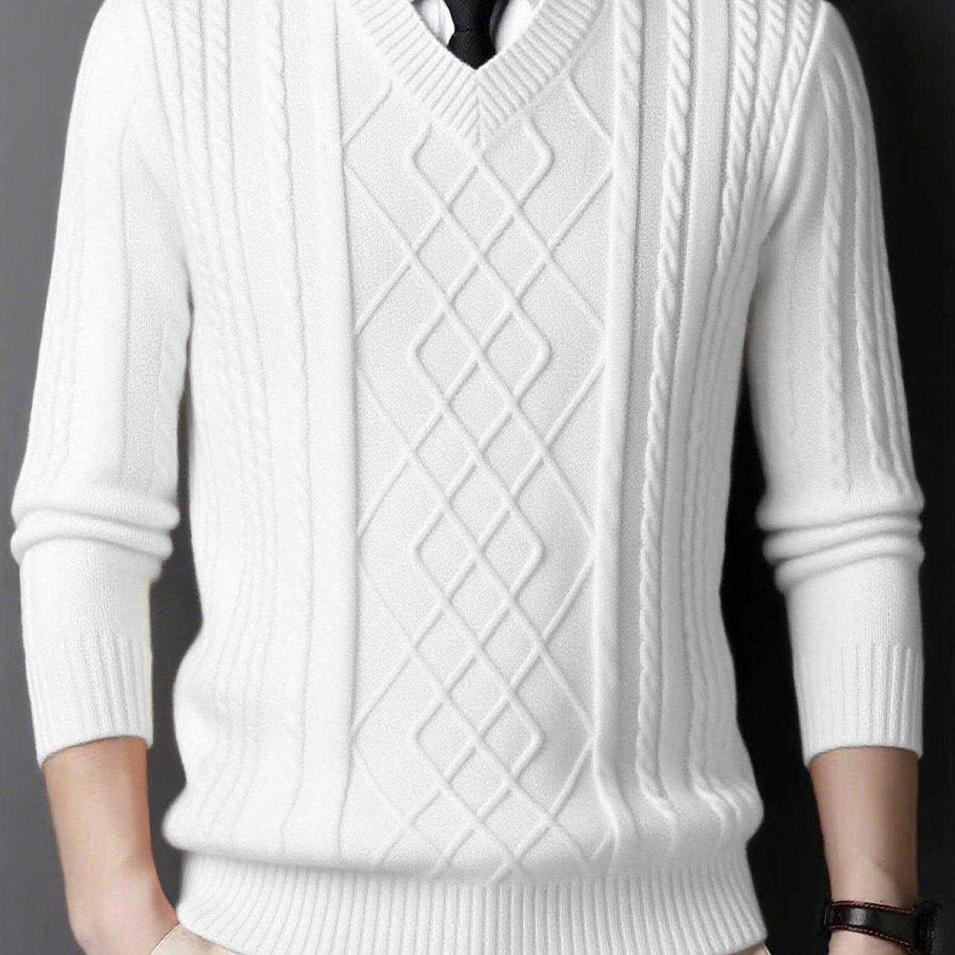 TEMU 남성용 단색 니트 꼬임 패턴 V넥 긴팔 캐주얼 스웨터 (가을/겨울용), 편안한 풀오버 탑