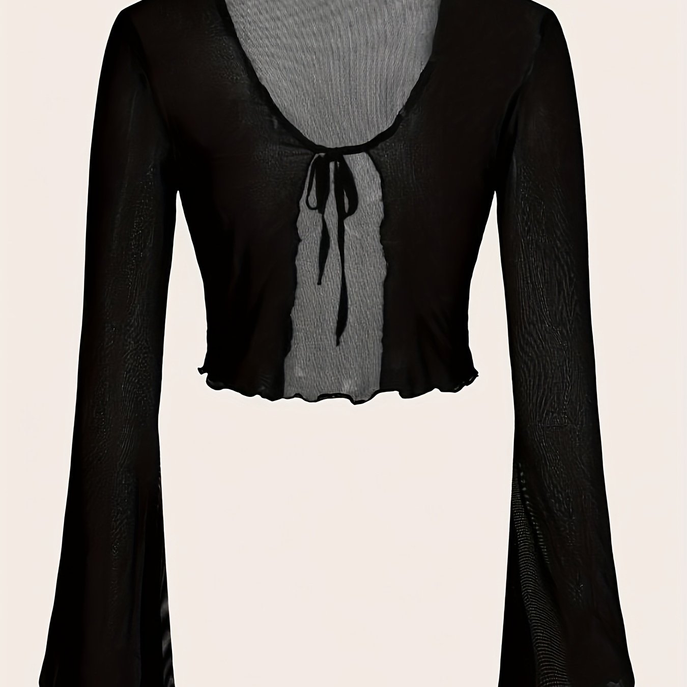 TEMU 시크한 아이스 섬유 메쉬 슬링백 탑 | V넥, 앞면 매듭 디테일, 플레어 밑단, 단색, 짧은 길이, 레귤러 핏