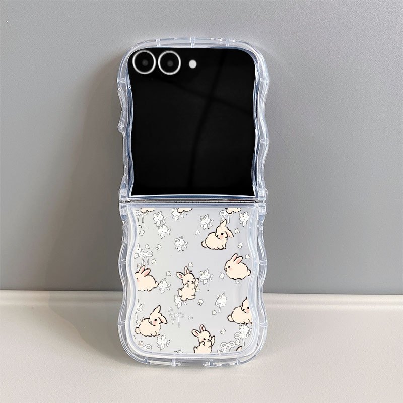TEMU 휴대폰 케이스 - 7695 토끼 플로럴 웨이브 투명 패턴 TPU 케이스, 삼성 갤럭시 폴드에 적합, 삼성 갤럭시 Z 플립 7/7SE/FE용 완전 보호 충격 방지 휴대폰 케이스, 삼성 갤럭시 Z 플립 6용, 삼성 갤럭시 Z 플립 5용
