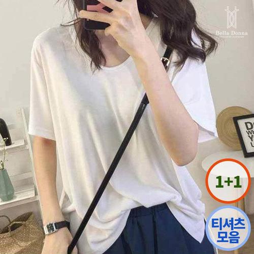 1+1 벨라도나 여성 데일리 루즈핏 꾸안꾸 반팔티셔츠 7종 이너티 캐주얼룩 Bon-2686s