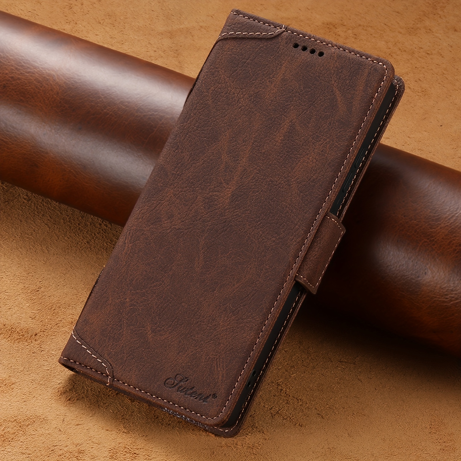 TEMU 휴대폰 케이스 - SUTENI 무선 충전 인조 가죽 카드 홀더 스탠드 지갑, 마그네틱 버튼 플립 커버 (삼성 갤럭시 S25 울트라, S24, S23, S22 호환) - 가족, 친구, 어르신을 위한 훌륭한 휴일 선물, 남성에게 적합.|지갑|S22케이스