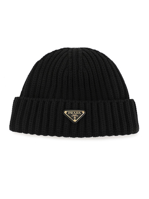 당일배송 프라다 트라이앵글 로고 골지 비니