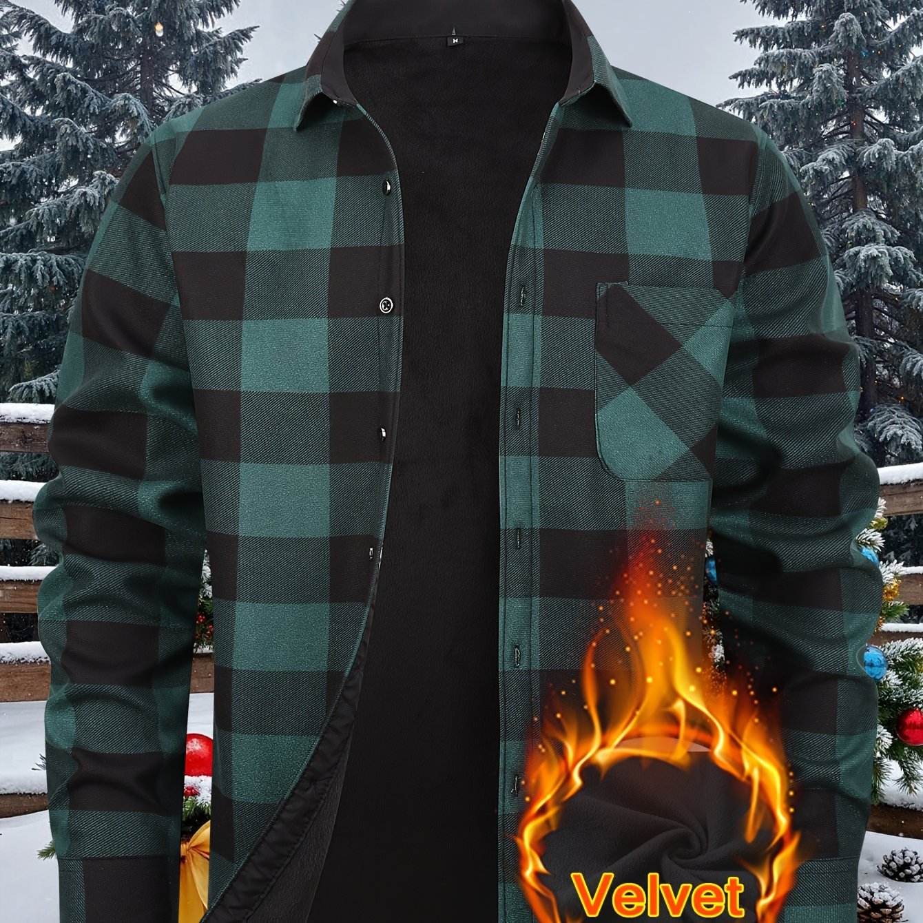 TEMU [핫아이템: 남성용 셔츠] 남성용 겨울 안감 두꺼운 체크무늬 따뜻한 셔츠 재킷, 아웃도어 스포츠 탑, 빈티지 마일라드 캐주얼 새해 발렌타인데이 선물, 핫추천