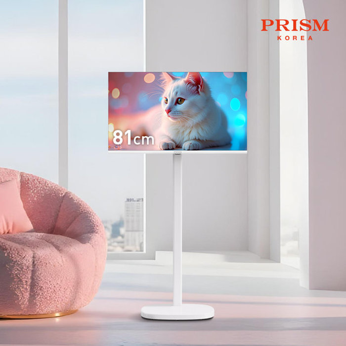 프리즘코리아 [10년보증] 프리즘 화이트 프리무빙 81cm(32인치) HD 구글 5.0 AI 스마트TV 삼탠바이미 이동형스탠드 CP32G5W+P1_택배배송(자가설치)