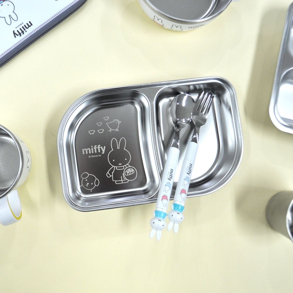 미피 스텐 304 라운드 2구 나눔접시 자기주도 간식 식판 유치원 어린이 유아용