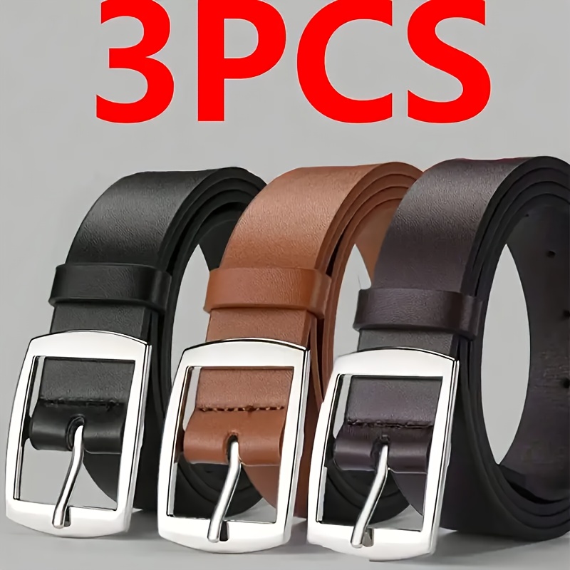 TEMU 남성용 패션 벨트 3종 세트, 합금 사각 버클, 캐주얼 청바지 벨트, 3가지 색상: 브라운/블랙/카키, PU 소재, 고품질 벨트로 일상 및 정장 착용에 적합. 벨트, 남성 패션 벨트, 정교한 공예와 내구성, 광택 있는 합금 버클. 청소년부터 중년 남성까지 캐주얼 팬츠, 카고 팬츠, 데님 의상과 매치하기 적합, 심플한 라인으로 스타일리시한 룩 연출