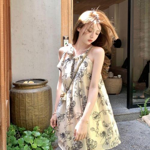 플로랄 프린트 슬리브리스 원피스 MFNC040112비치 끈나시 쉬폰 비치룩 캐주얼 데일리 플라워 꽃무늬 한여름